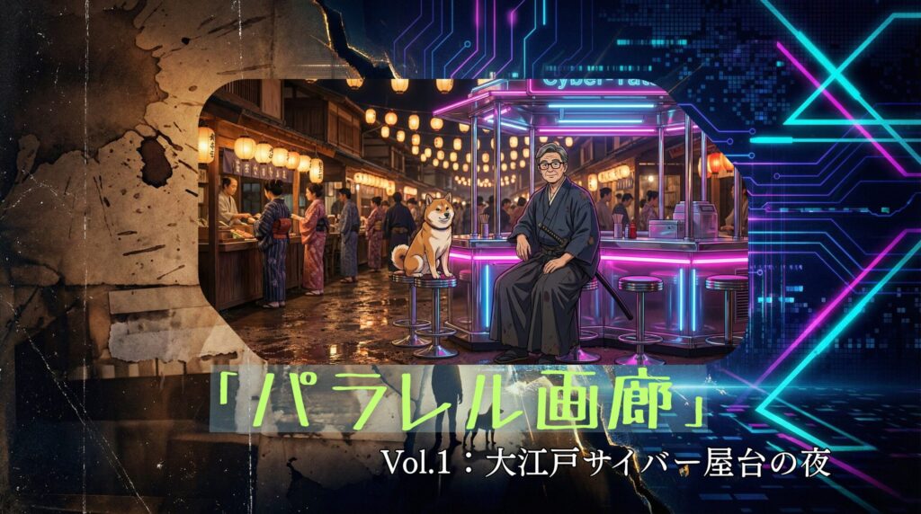 皆様、パラレル画廊へようこそ。 時空のバグを観測するこの旅、第3回の舞台は「未来の月面」です。 ご覧ください。背後に青く輝く巨大な地球を背負い、ピカピカのメタリックなサイドカー型タイムマシンで月面エアポートに降り立った、やすだとワンの姿を。... -