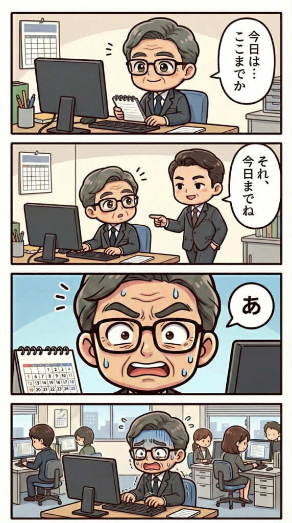 アナログなカレンダーを目視するだけで管理したつもりになる。まさにヒューマンエラーの典型例ですね。あなたの時間軸は、常に数日未来にスキップしているんですか?