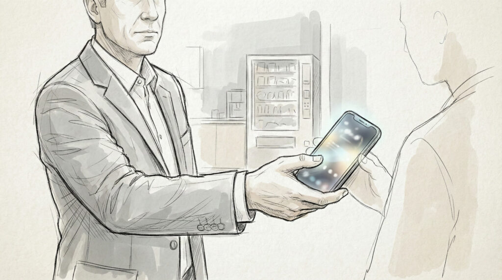 そのとき、ふと「うまく説明しようとするのは、もうやめよう」と思いました。 言葉を尽くして理解を求める代わりに、ジャケットのポケットから iPhone を取り出しました。